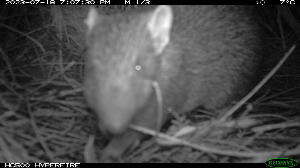 But thousands of photos taken with fauna cameras over the last 7 months by the Port Campbell Community Group has proven that the site is a healthy breeding colony of the Southern Brown Bandicoot. Photos of babies ranging from 9cm to mid size juveniles have been recorded, along with mature adults and the bull nosed males. Individual profiles have been determined through distinct natural markings or scars on the individuals.